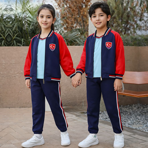 Pamuklu, rahat kesim okul önlüğü. Tüm sınıflar için uygundur.